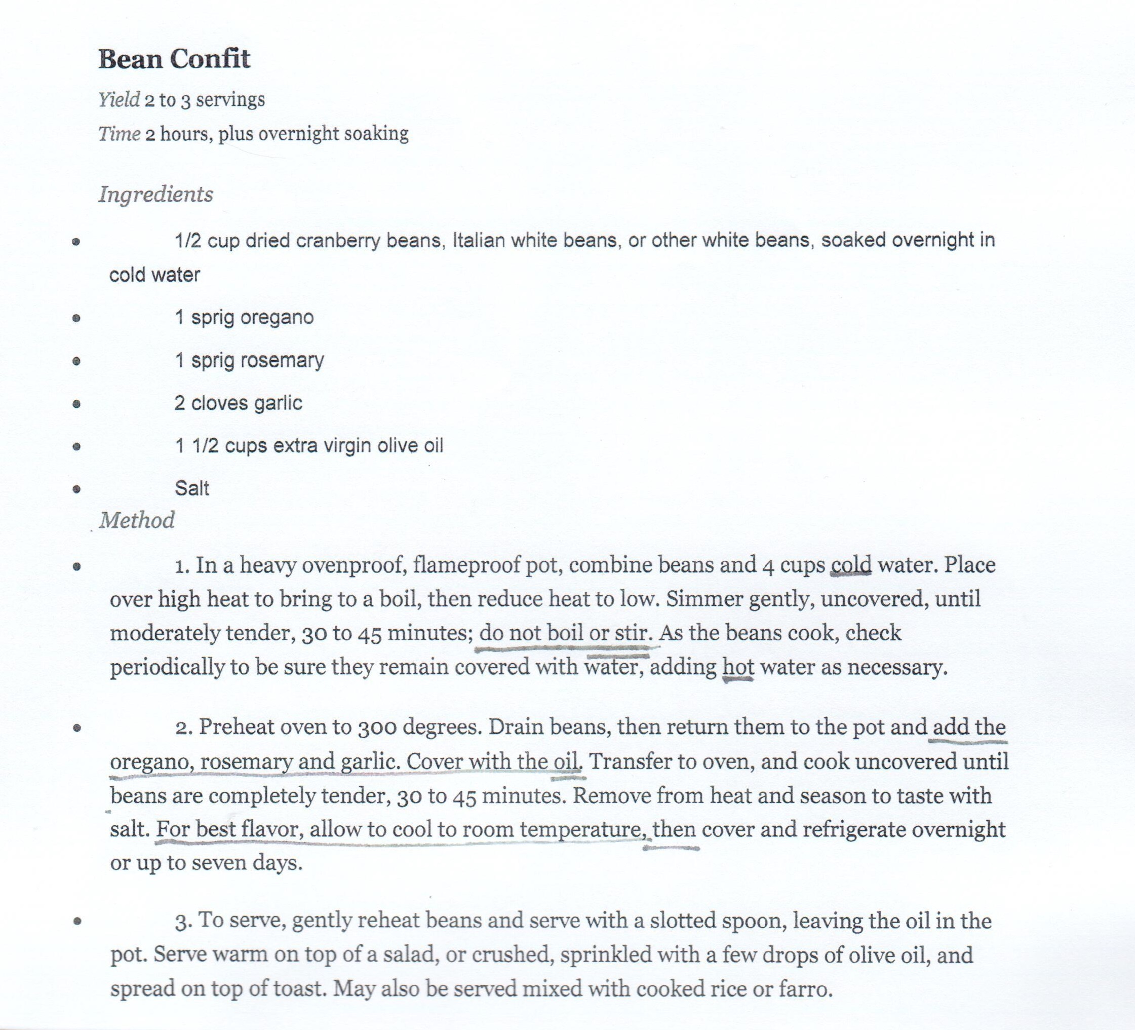 Bean Confit (this is one of our favorites – we served it at Molly’s wedding)